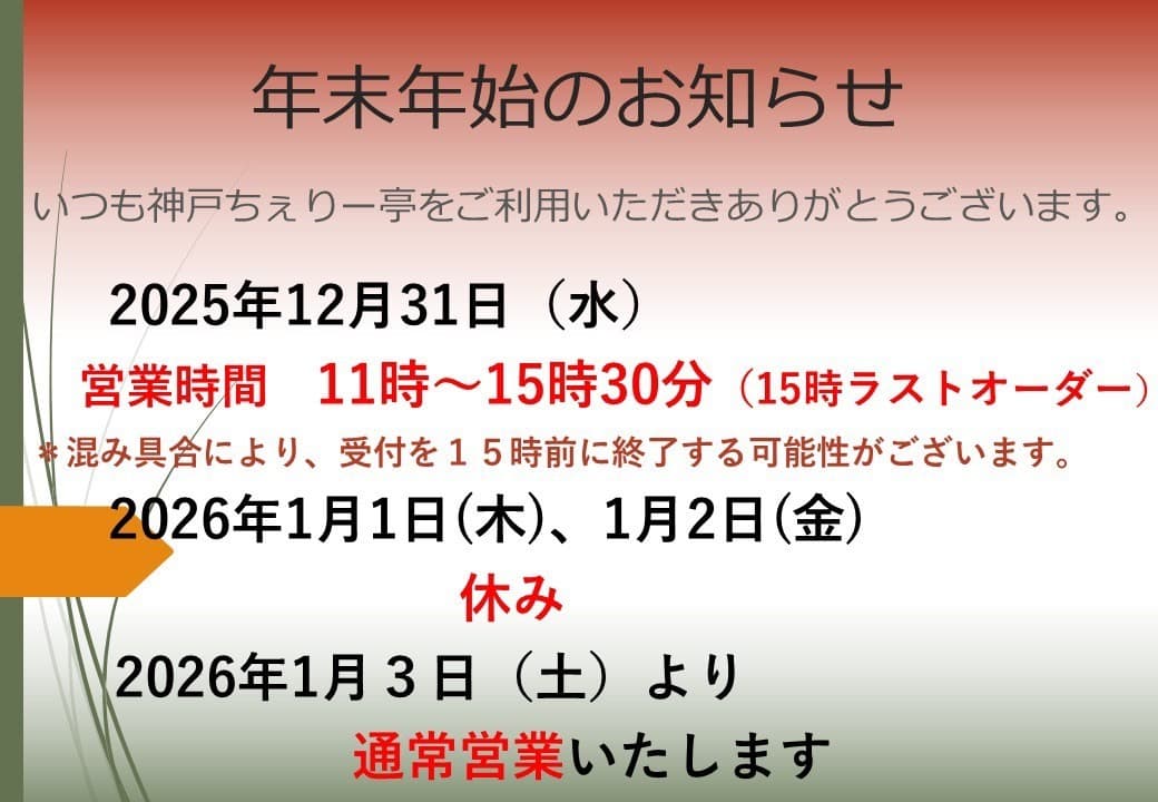 神戸ちぇりー亭は、兵庫県内に3店舗展開中!